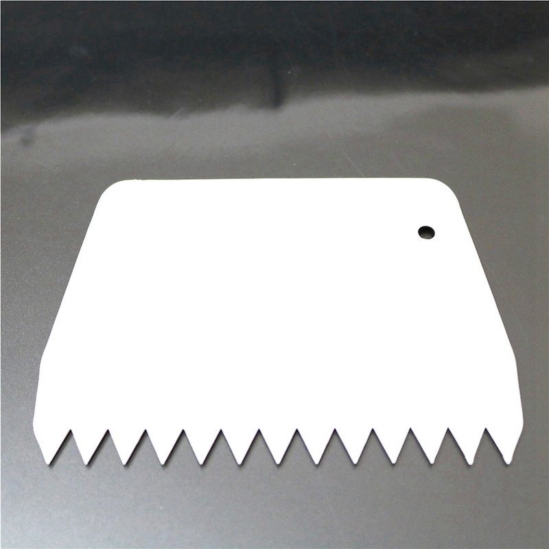 Кондитерский скребок прямой с зубчиками предназначен для придания рельефа шоколаду, айсингу, бисквиту, крему, мастике.